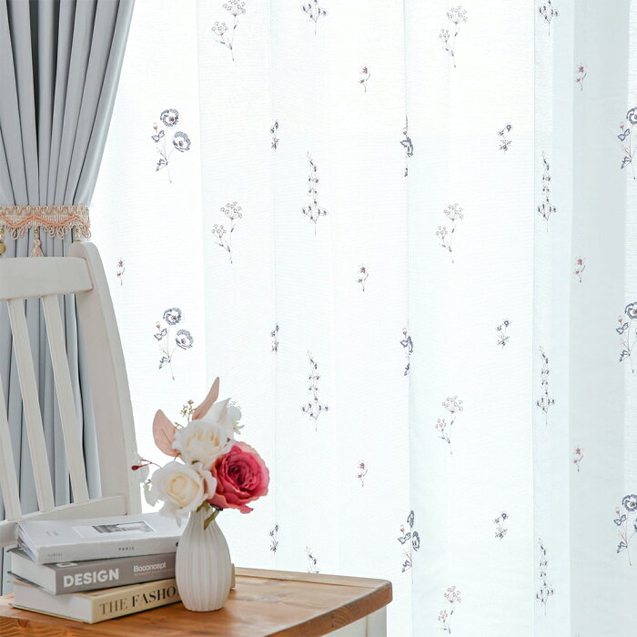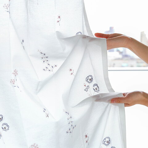 【¥5,400〜】【ポイント最大15倍】 レースカーテン おしゃれ ミラー 遮像 遮熱 UVカット 保温 オーダー 丈50cm-285cm 幅30cm-300cm 花柄 刺繍 ポリエステル フック付 ブルー×ピンク 〜プランタン 〜 【最短・翌日出荷】