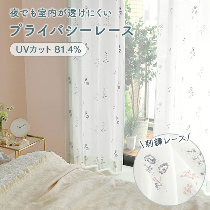 かわいいだけじゃない!プライバシーを守る、昼夜透けにくい遮像レースなので女性の一人暮らしにもおすすめのレースカーテンです。