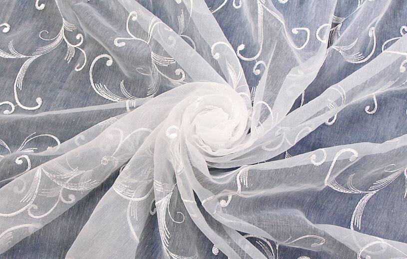 エンブロイダリーレース ~フィオナ~ ホワイト 【撮影カーテン仕様】ヒダ数:標準1.5倍ヒダ(2つ山) 羽根が風で舞っているような軽やかなデザイン。