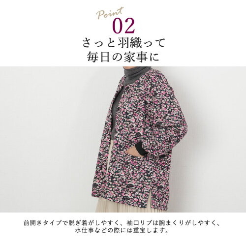 前開きタイプで脱ぎ着がしやすく、さっと羽織って毎日の家事にも、暖かく着心地がいいのでおうち着としても着用いただけます。