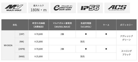 【HiKOKI 日立工機】マルチボルト(36V)コードレスインパクトドライバ WH36DA(2XPB)ストロングブラック「 マルチボルト蓄電池36V/BSL36A18×2個 .急速充電器. ケース付き」