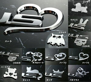 メッキエンブレムなので、違和感もなく付けられ、 両面テープ付で貼るだけ簡単装着!! 人とはちょっと違うアイテムで周りの注目度UP! 【素 材】ABS樹脂(メッキ仕様)厚み約3mm 【デザインタイプ・サイズ(約)】 ・ハート:H59mm×W73mm(開口部25mm) ・スター:H68mm×W68mm(開口部25mm) ・うさミミ:H32mm×W28mm ・スカル(大):H35mm×W47mm ・スカル(小):H25mm×W35mm ・ダブルハート:H50mm×W58mm ・ハート2:H54mm×W58mm ・ハート3:H60mm×W49mm ・キャット:H68mm×W68mm ・怒り:H15mm×W15mmが4個 ・キング:H28mm×W57mm ・バタフライ:H71mm×W64mm ・フクロウ:H36mm×W48mm ・ハートベア:H43mm×W48mm ・ドッグ3:H43mm×W47mm ・キャット3:H55mm×W65mm(開口部25mm) ・肉球:H45mm×W53mm ・ドル:H39mm×W27mm フクロウデコバージョンはこちら 【取り付け方法】 ・接着面は脱脂をしっかりしましょう! ・貼る場所を決めたら、一気に貼ってください。