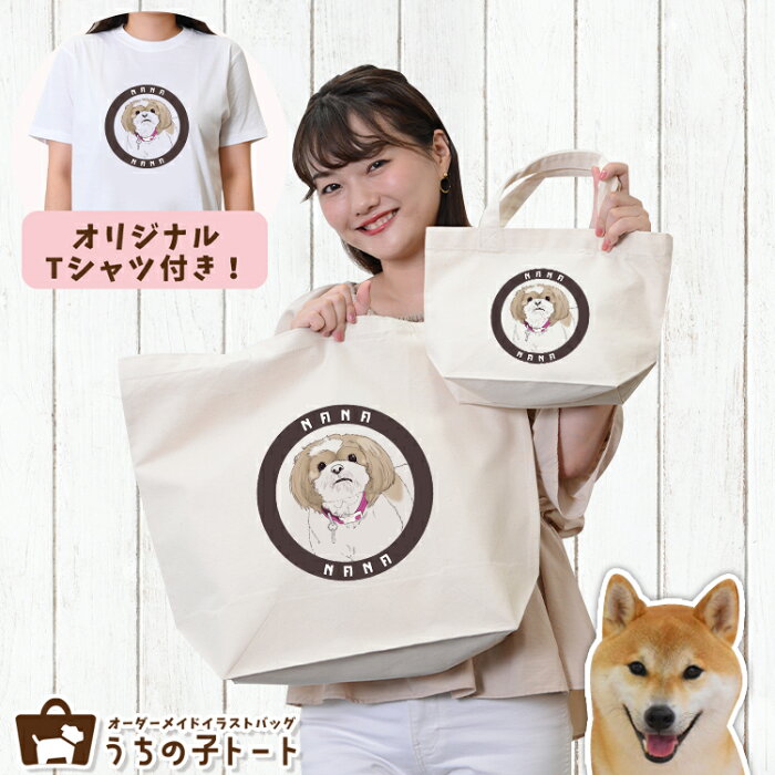 オーダーメイド 柴犬 バッグ トートバッグ Tシャツ オリジナル ブランド グッズ 雑貨 エコバッグ 犬 猫 ペット 動物 名入れ イラスト 写真 プリント ランチ トート 散歩 プレゼント ギフト 記念日 誕生日 Lサイズ Sサイズ【ネコポス】【Lot No.6】