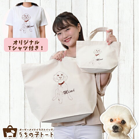 ●商品名うちの子トート●サイズ Lサイズ:幅48cm×高さ40cm×マチ15cmSサイズ:幅30cm×高さ20cm×マチ10cmTシャツ:Mサイズ(着丈68cm/身巾51cm/肩巾43cm/袖丈20cm)※本商品はセット売りです。