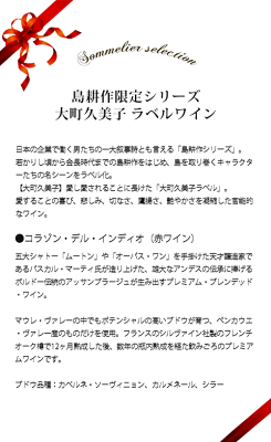 品名島耕作限定シリーズ 大町久美子 ラベルワイン(コラゾン・デル・インディオ)※クール便ご指定の場合は別途300円(税別)頂戴いたします。