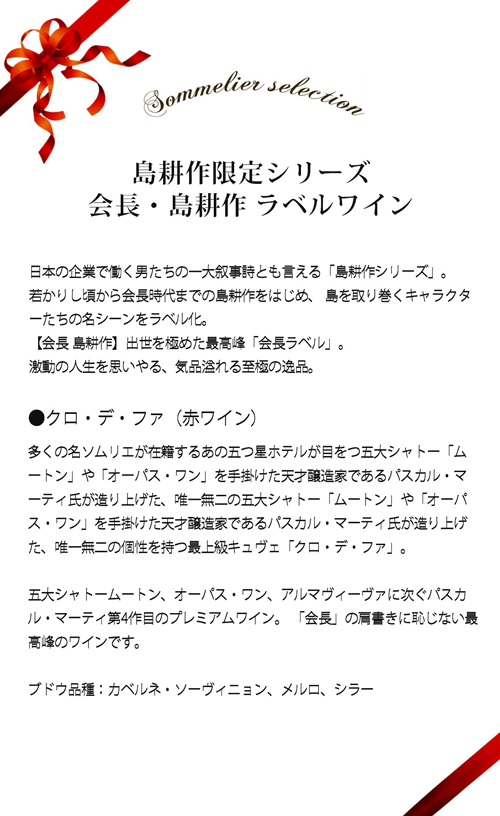 ギフトセット 島耕作限定シリーズ 会長・島耕作 ラベルワイン(クロ・デ・ファ)赤ワイン 750ml【ギフト ワイン】【ギフト・プレゼント】【ソムリエ】【敬老の日】