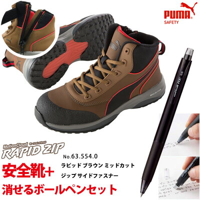 2021モデル 最新作 安全靴 作業靴 ラピッド 28.0cm ブラウン ジップ ミッドカット 消せるボールペン付きセット PUMA(プーマ) 63.554.0 ( RAPID モーションクラウド スニーカー 作業用 ワーキングシューズ 安全シューズ セーフティーシューズ 先芯 )