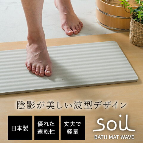 珪藻土 バスマット ウェーブ 日本製 soil 足拭き 【アスベスト未使用】 ソイル イスルギ 珪藻土バスマット おしゃれ 人気 ギフト プレゼント かわいい 北欧 滑りにくい 人気 湿気 快適 国産 速乾 吸収 ノンアスベスト 【ポイント10倍】 【soil BATH MAT wave】