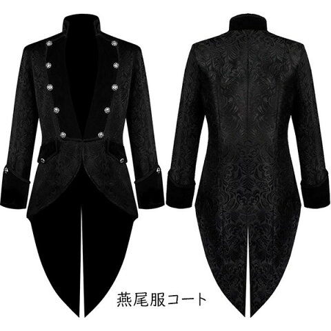 メンズ ジャケット アウター ベルベット 大きいサイズ 燕尾服 タキシード ミモレ丈 王子様 ステージ衣装 舞台 演出 貴族 コスプレ 衣装 オペラ用衣装 男性 大人 忘年会 イベント 発表会 演奏会 司会者 かっこいい ハロウィン 文化祭 学園祭 黒 ei145t2t2jc