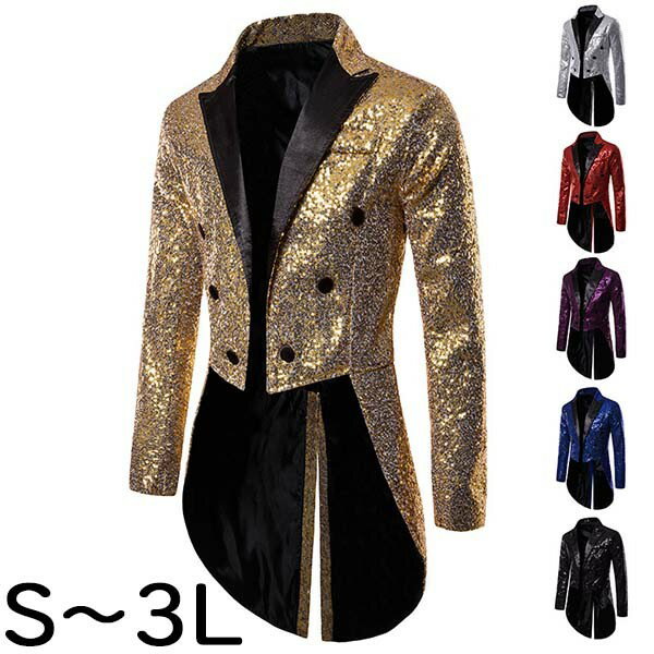 メンズ ジャケット アウター 燕尾服 キラキラ スパンコール 王子様 ステージ衣装 舞台 演出 貴族 コスプレ 衣装 オペラ用衣装 男性 大人 忘年会 イベント 発表会 演奏会 司会者 かっこいい ハロウィン 文化祭 学園祭 赤 金色 銀色 紫色 青 黒 ei144t2t2jc