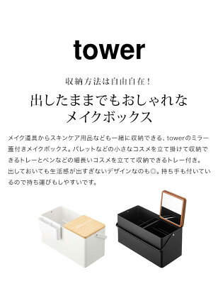 メイクボックス 鏡付き 大容量 持ち運び 卓上 タワー tower 山崎実業 化粧ボックス コスメボックス 収納 ブラック 黒 白 ホワイト 収納 ボックス おしゃれ シンプル 無地 化粧品収納 ミラー付き 持ち手付きメイクケース メイク道具 コスメポーチ ドレッサー インテリア