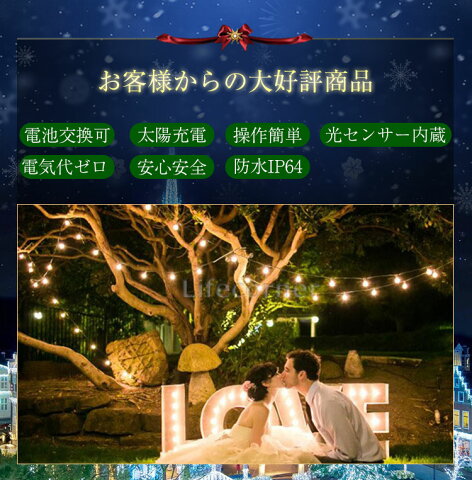 25日限定!ポイント5倍★ランキング入賞 クリスマス イルミネーション led ソーラーライト 自動点灯 光センサー 太陽光 充電 飾り 壁 装飾 屋外 おしゃれ イルミネーションライト 窓 庭 部屋 玄関 自宅 ガーデン 結婚式 ウッドデッキ フェンス 電飾 キャンプ バルブ