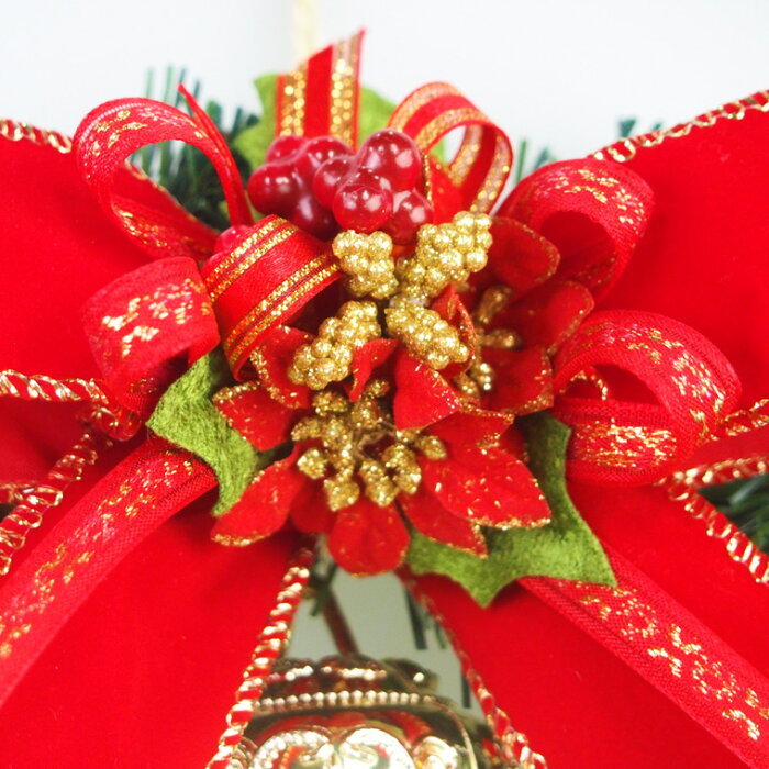 クリスマスリース25cmレッド 玄関 部屋 北欧 ナチュラル 手作り 上品 高級 豪華 おしゃれ 赤 キラキラ 飾り 装飾 かわいい ドア 壁掛け ハンガー アートフラワー 天然素材 花 造花 ベル インテリア ギフト プレゼント クリスマスリース 国内生産