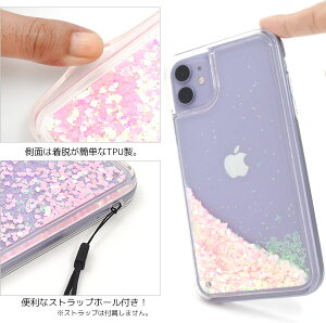 ハートが揺れ動くケースiPhone 11用トキメキハートケース ケースの中に水と小さいラメ・ハート型のラメが入っており、 ラメが水の中をサラサラと流れるケースです。