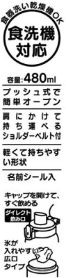 【商品サイズ】サイズ:約 横95×奥行79×高さ210mm容量:480ml【品質表示(耐熱温度)】キャップ:飽和ポリエステル樹脂(100度)本体・フタ・ベルト:ポリプロピレン(120度)パッキン:シリコーンゴム(140度)バネ・ピン:ステンレス使用抗菌剤の種類:無機抗菌剤加工方法:練込加工部位:全体(ベルト及び金属部位除く)SIAA(抗菌製品技術協議会):認証マーク取得 JP0122581X0013ESIAAマークはISO22196法により評価された結果に基づき、抗菌製品技術協議会ガイドラインで品質管理・情報公開された製品に表示されてます。